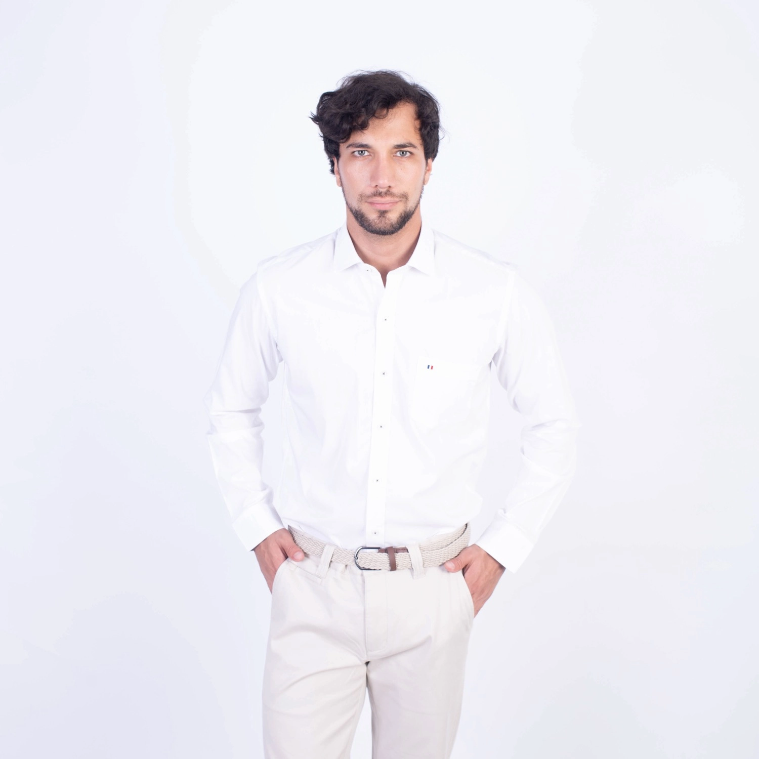 Camisa ML Popelina Etiqueta Azul con diseño frances PC-62650CA