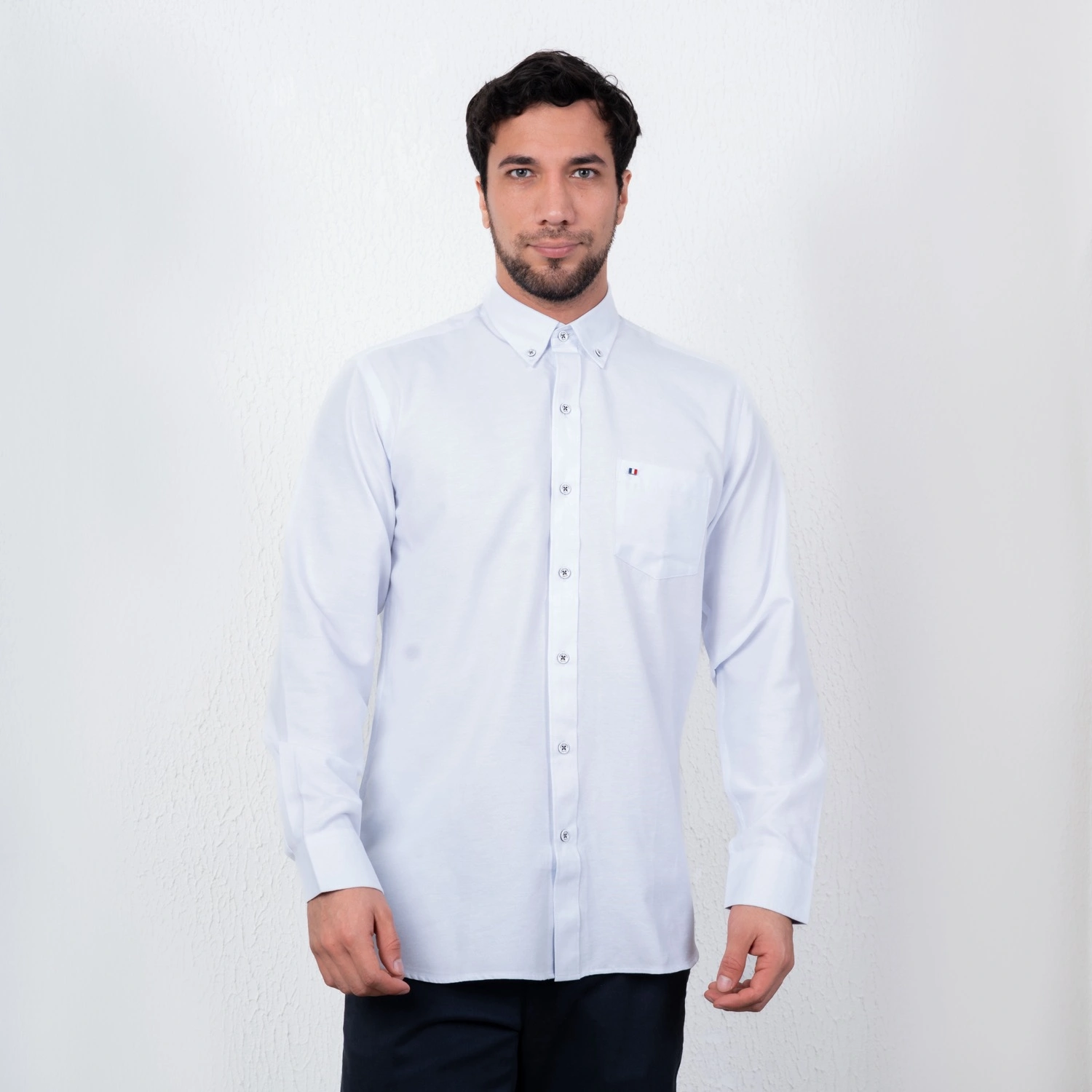Camisa ML Color Entero Etiqueta Azul con diseño frances PC-61606CA