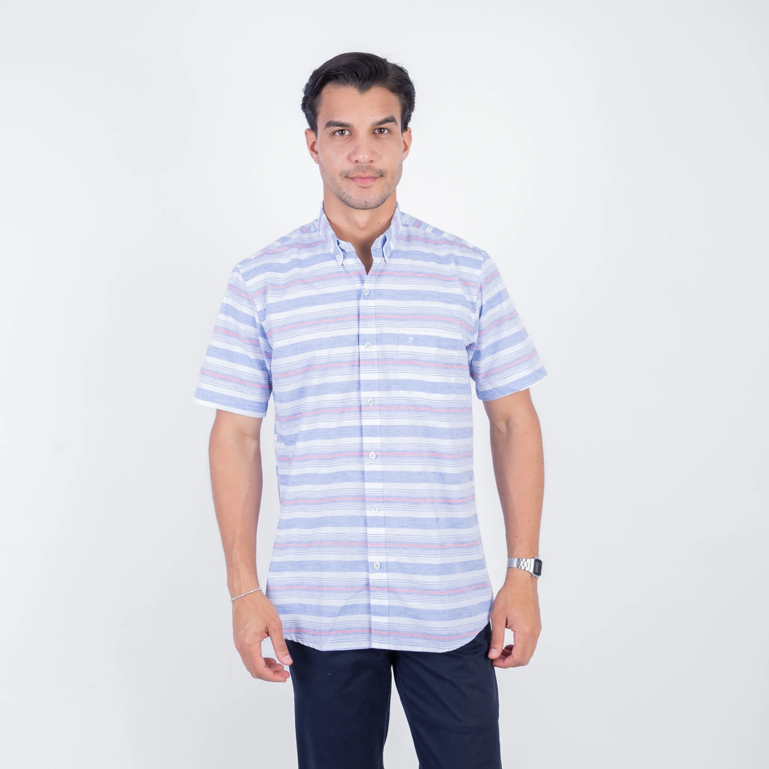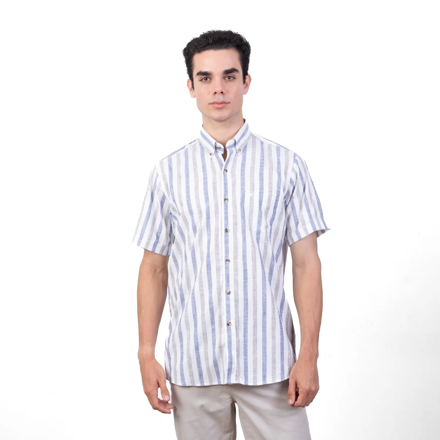 Camisa MC Etiqueta Linen Collection con diseño Francés PC-62434CA