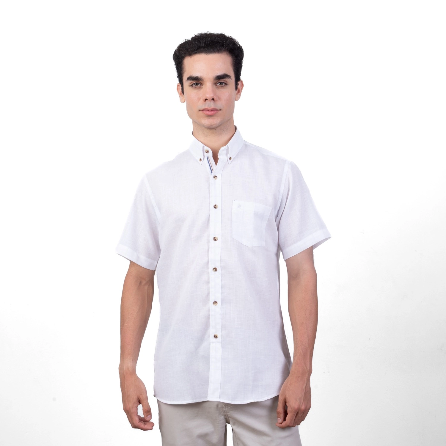 Camisa MC Etiqueta Linen Collection con diseño Francés PC-62412CA