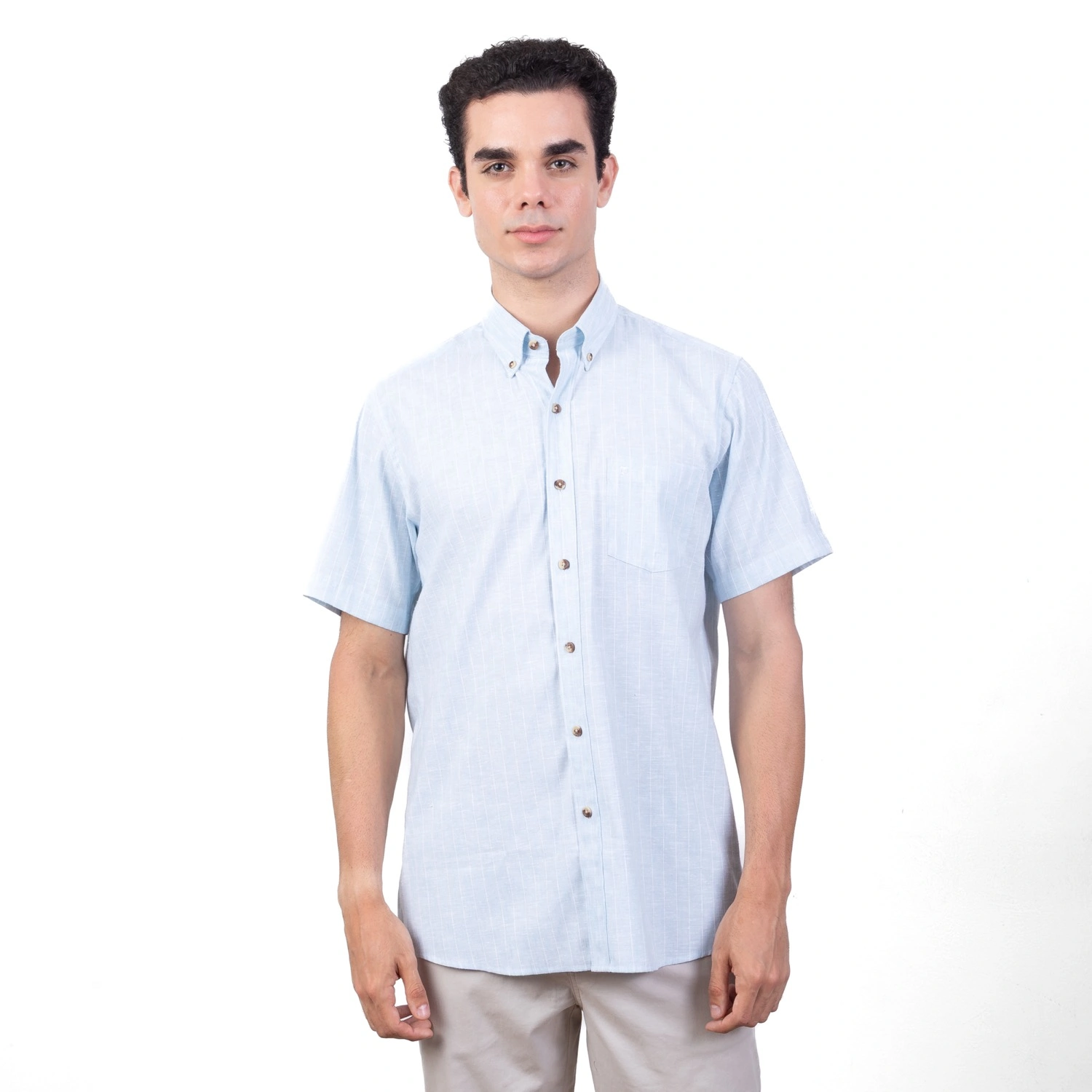 Camisa MC Etiqueta Linen Collection con diseño Francés PC-62420CA