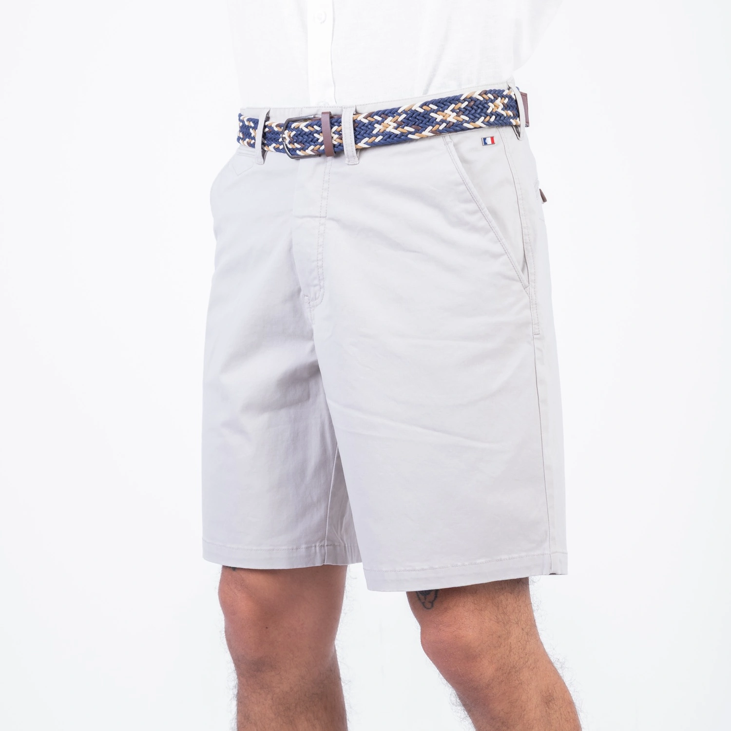 Bermuda Drill Bedford Stretch con diseño Francés. |Composición 98% Algodón y 2% Elastano. |Modern Fit. |Stretch. |Aplicación francesa en contraste al interior de la cintura. |Modelo con 5 bolsillos|Aplicación de bandera francesa metalica en bolsillo frontal izquierdo. |Modelo con bolsillo secreta.|Incluye correa en contraste. |Aplicación de tela en contraste al interior de los bolsillos.