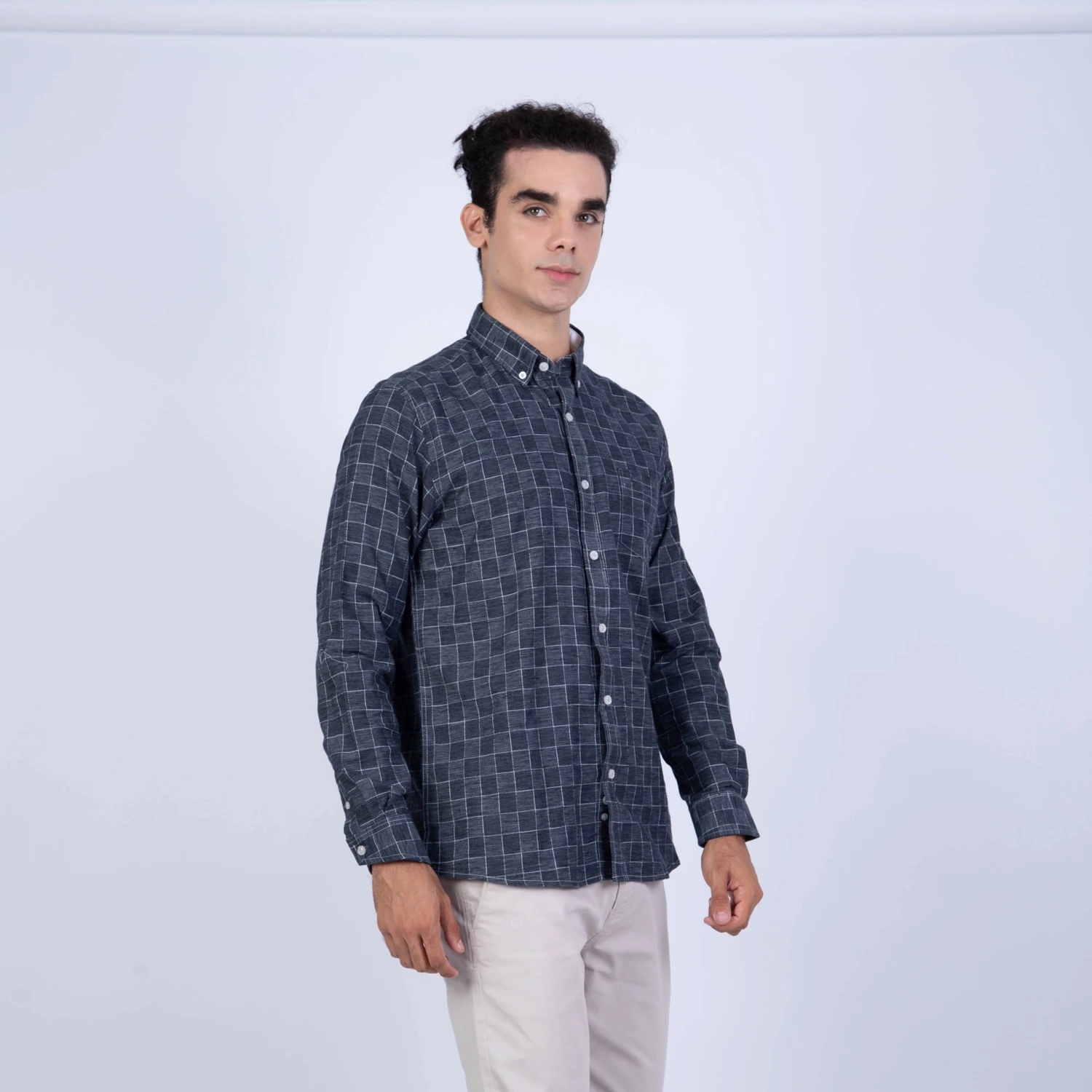 Camisa ML Etiqueta Azul con diseño frances.| Composición 100% Algodón.| Tela con diseño a cuadros.| Botones personalizados.|Puño con apertura de 1 boton.| Cuello Buttondown| Aplicación de tipping Gris en contraste al interior del cuello.| Aplicación de tela en contraste al interior del cuello.| Aplicación de hilo Gris en contraste en los botones.| Aplicación de Logo ¨P¨ bordado al tono en el bolsillo.