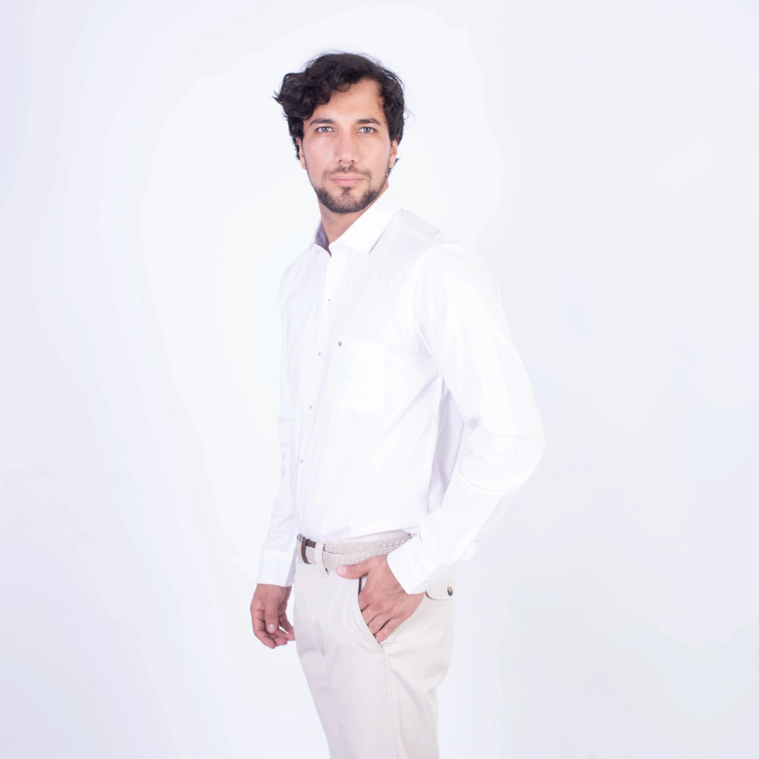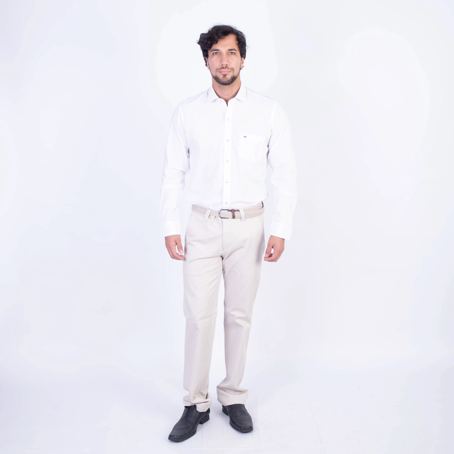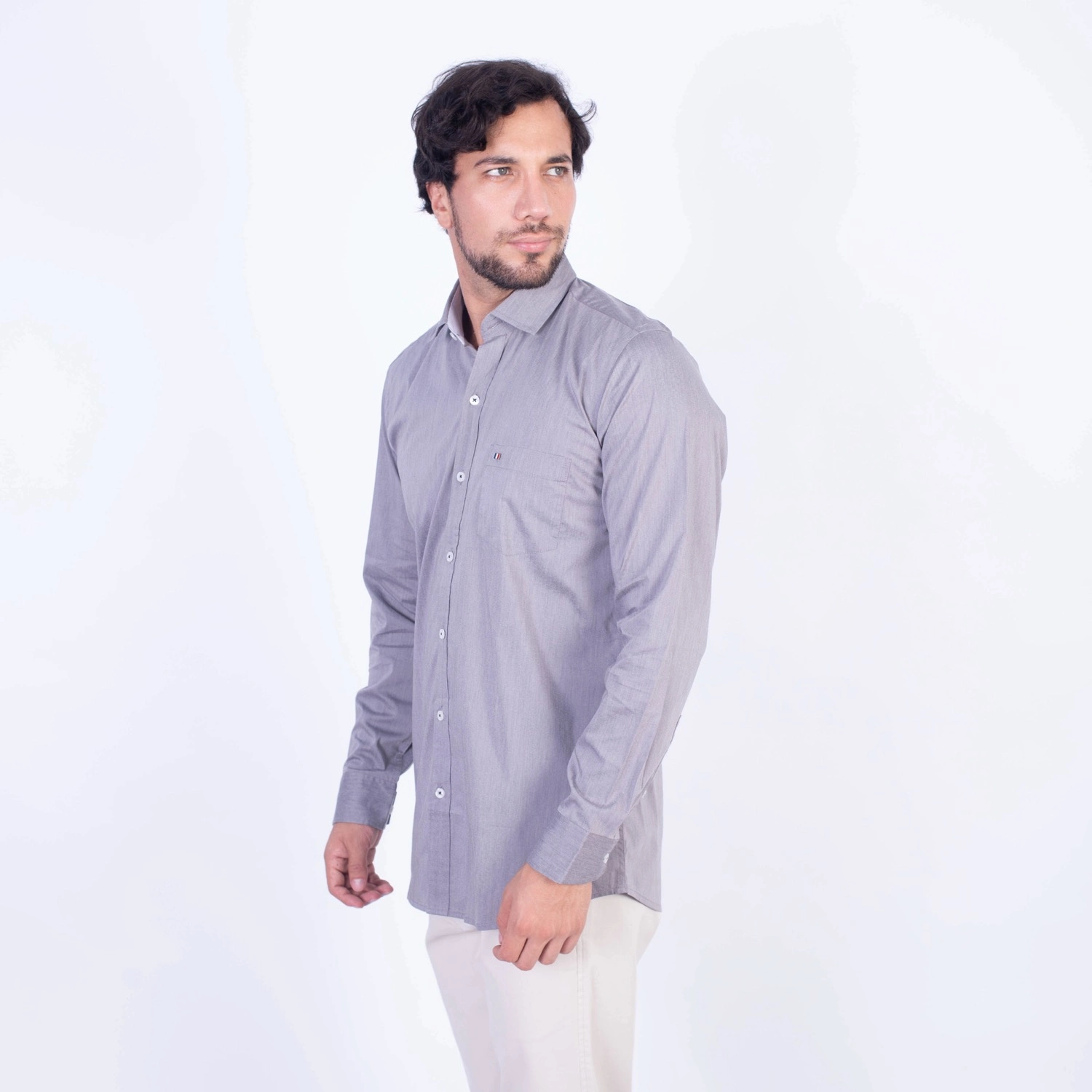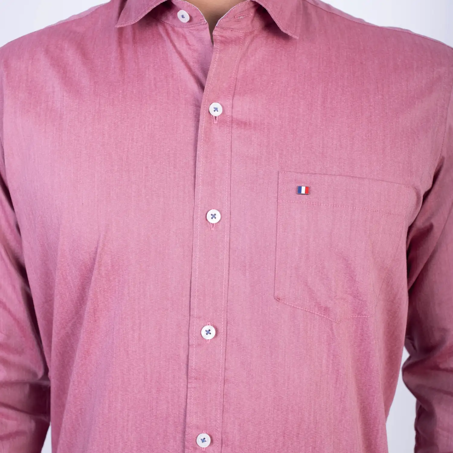 Camisa ML Popelina Etiqueta Azul con diseño frances.| Composición 65% Algodón, 32% Poliester y 3% Elastano.| Tela con diseño Color Entero.| Botones personalizados.|Puño con apertura de 2 boton.| Modelo con Cuello Frances| Aplicación de tipping azul en contraste al interior del cuello.| Aplicación de tela mil rayas en contraste al interior del cuello,puños, y media luna.| Aplicación de hilo azul en contraste en los botones.| Aplicación de bandera francesa metalica en contraste en el bolsillo. |Modelo con tela Stretch.