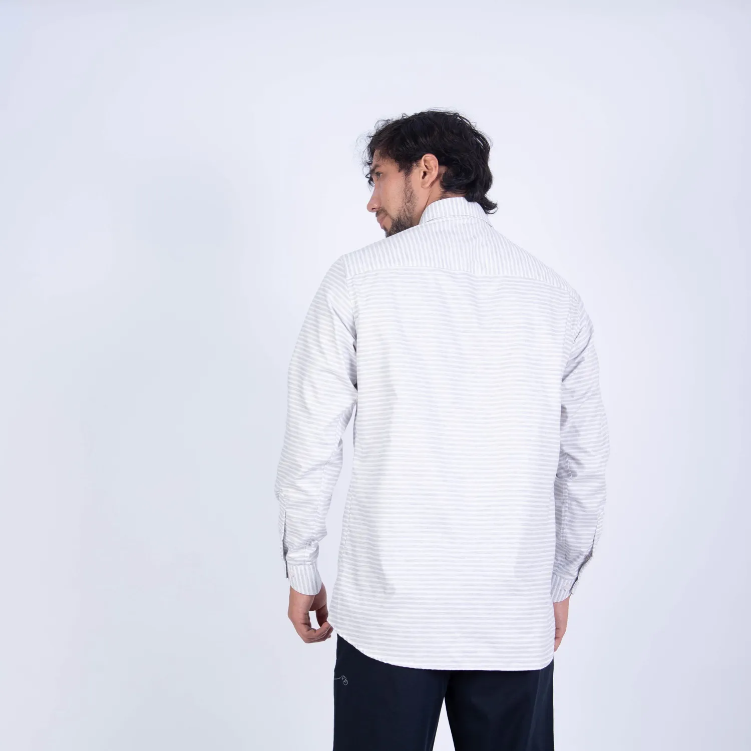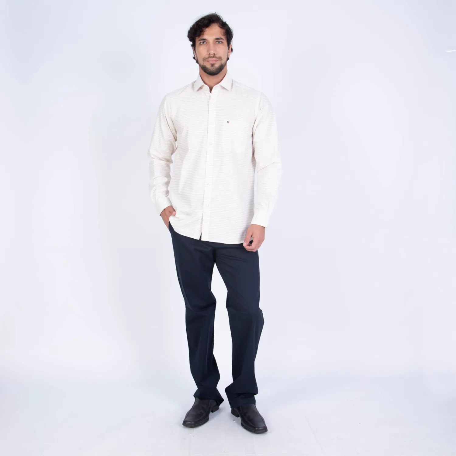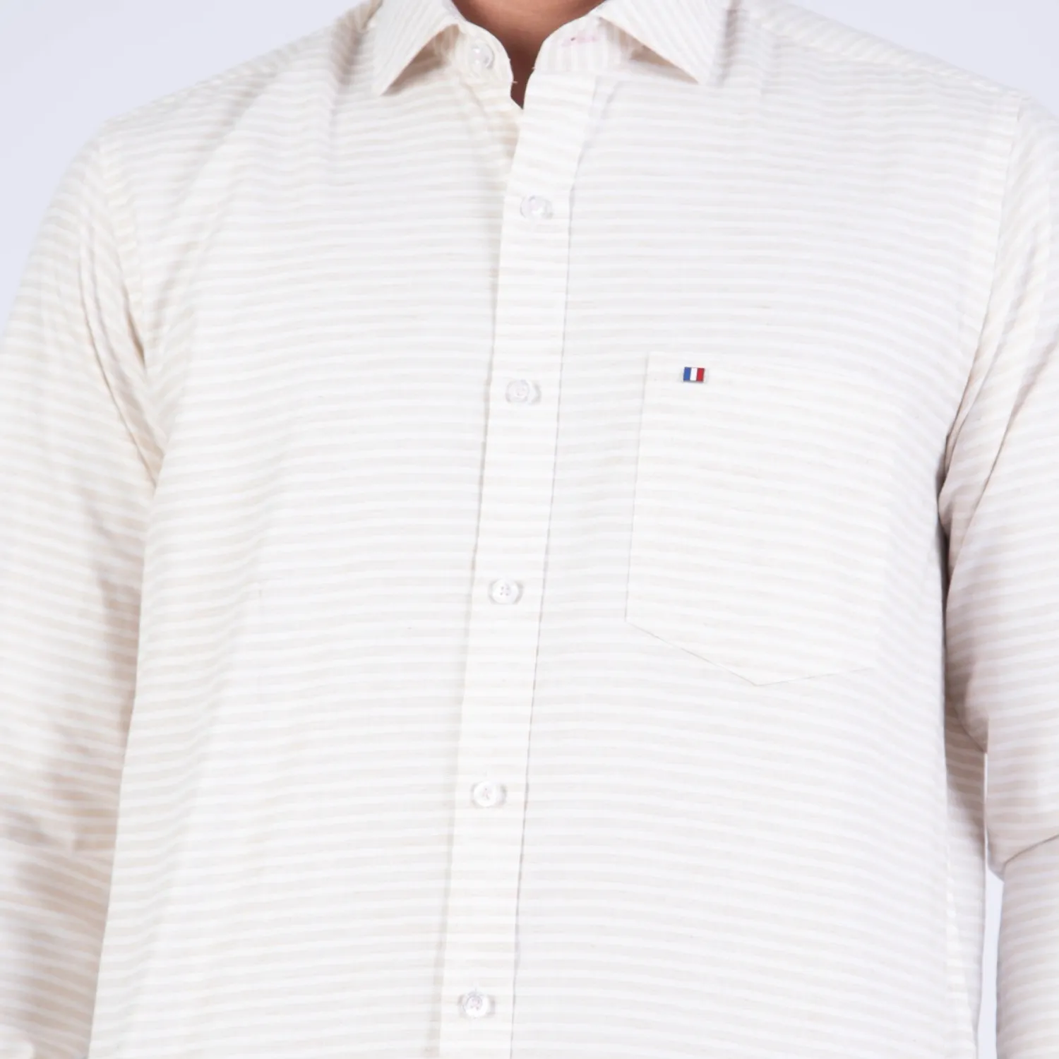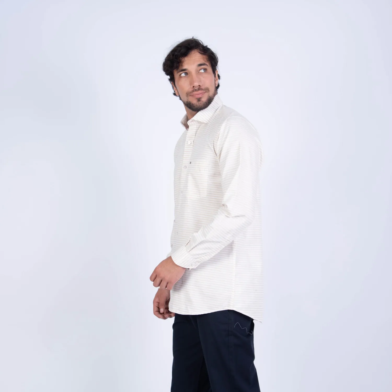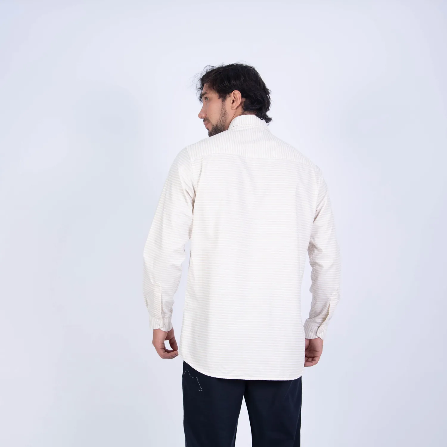 Camisa ML Sport con Cuello Frances Etiqueta Puro Lino Italy.| Composición 100% Lino.| Tela con diseño de rayas horizontales.| Etiqueta Puro Lino Italy.| Camisa Sport Manga Larga.| Modelo con Cuello Frances.| Bolsillo en la pechera de la camisa.| Aplicación de bandera francesa metallica en el bolsillo.| Botones personalizados.| Aplicación de hilo rosado en contraste en los botones. |Aplicación de ojal principal bordado con hilo rosado. | Puño con cierre de dos botones.