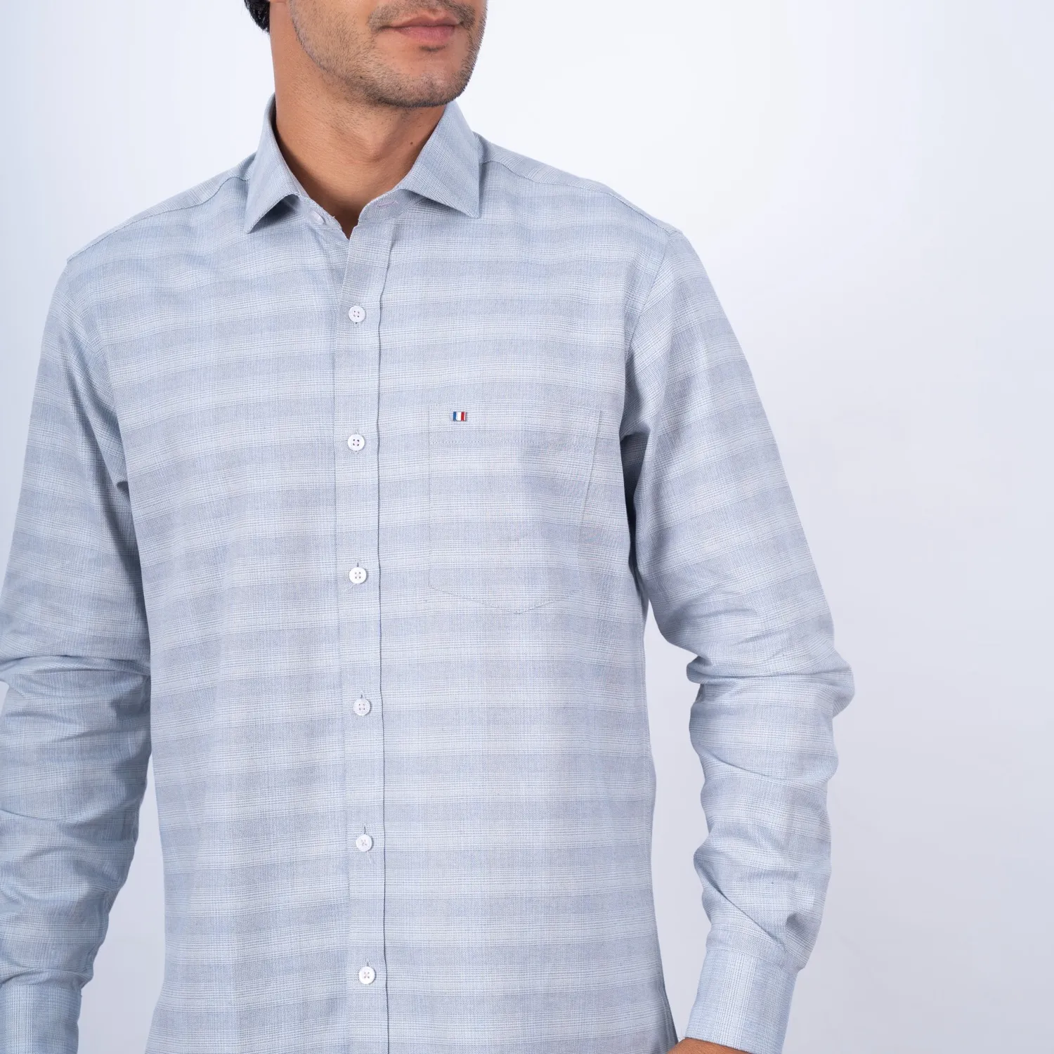 Camisa ML Sport con Cuello Frances Etiqueta Tessuto Made in Italy.| Composición 100% Algodón.| Tela con diseño de rayas horizontales.| Camisa Manga Larga.| Modelo con Cuello Frances. |Botones personalizados. |Modelo de camisa con bolsillo. | Aplicación de bandera francesa metalica en el bolsillo.| Puño ajustable con apertura de dos botones.| Aplicación de hilo en cruz Rosado en contraste en los botones.| Aplicación de cinta tipping Rosada en contraste en el interior del cuello. |Ojal del cuello rosado en contraste.
