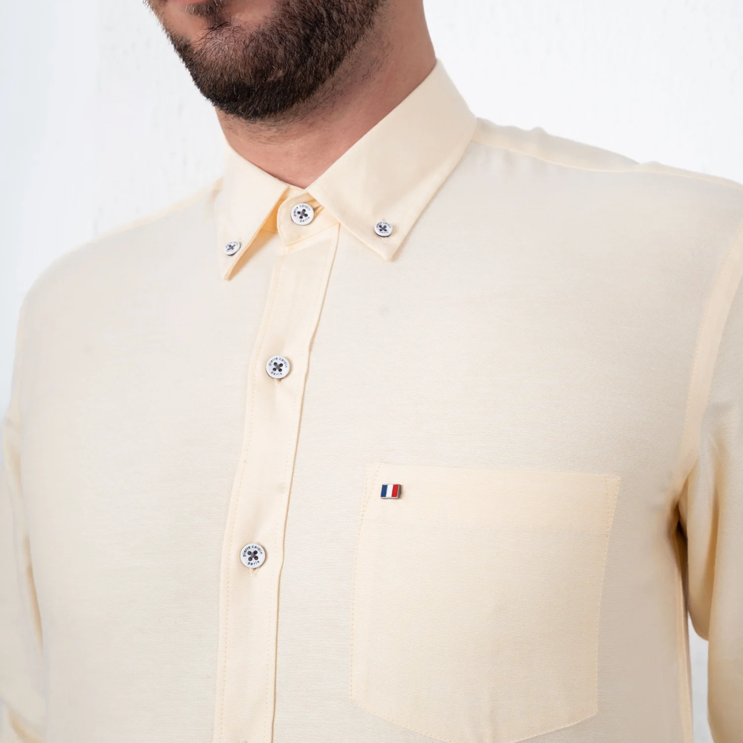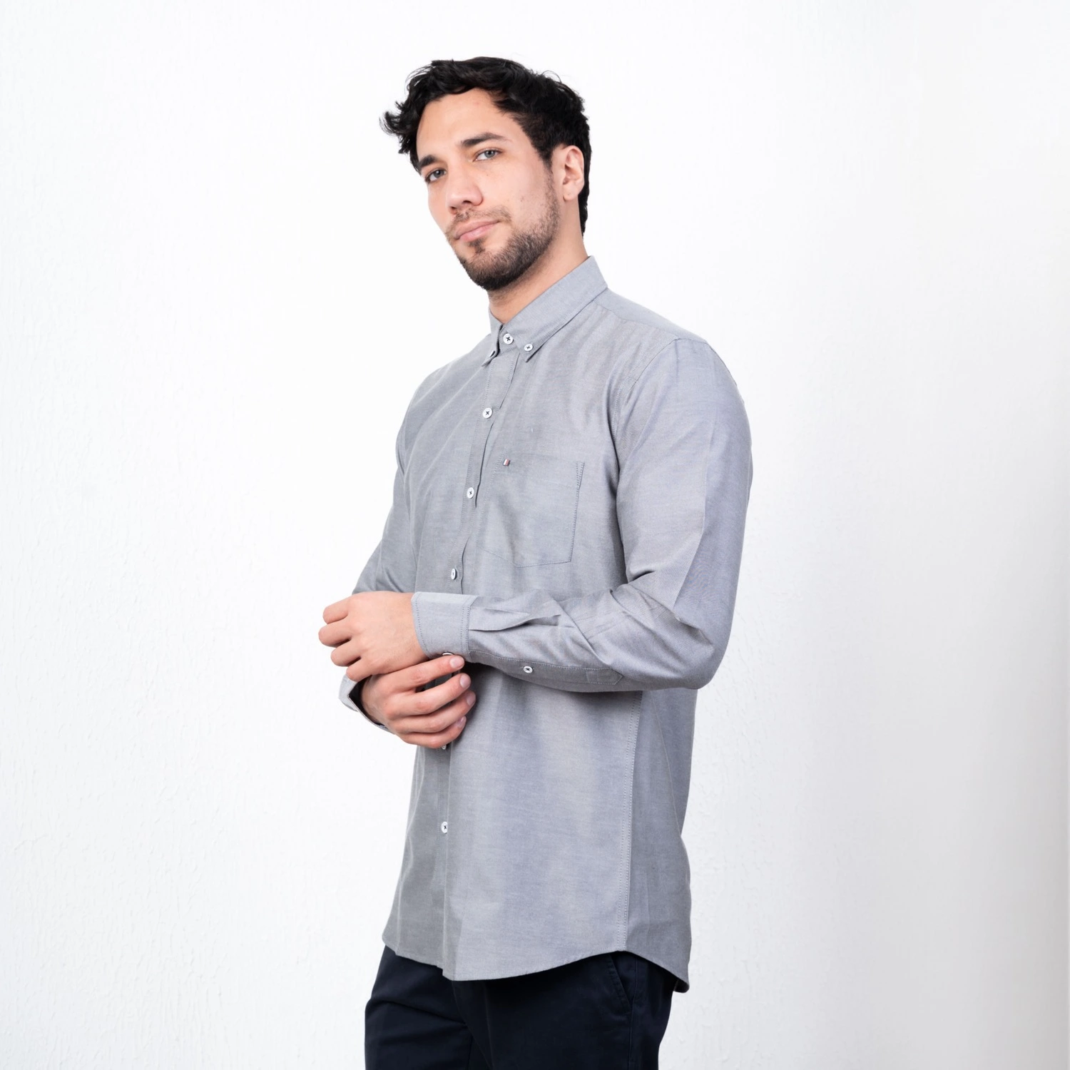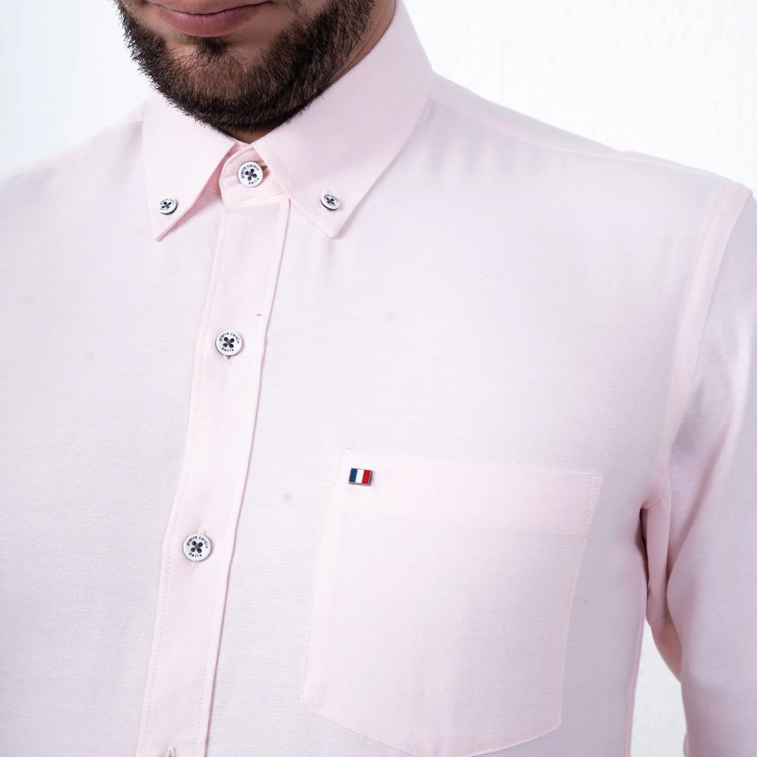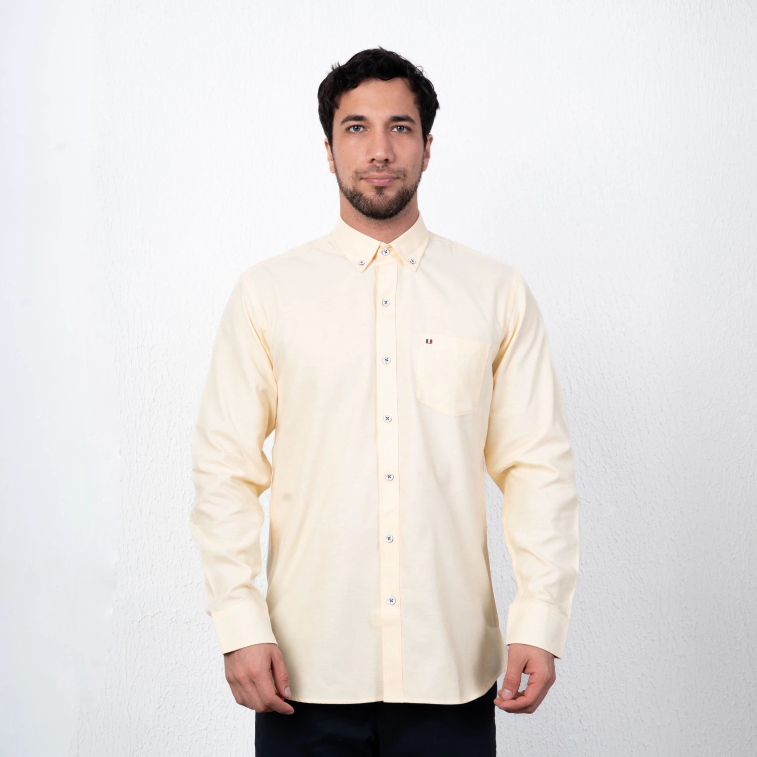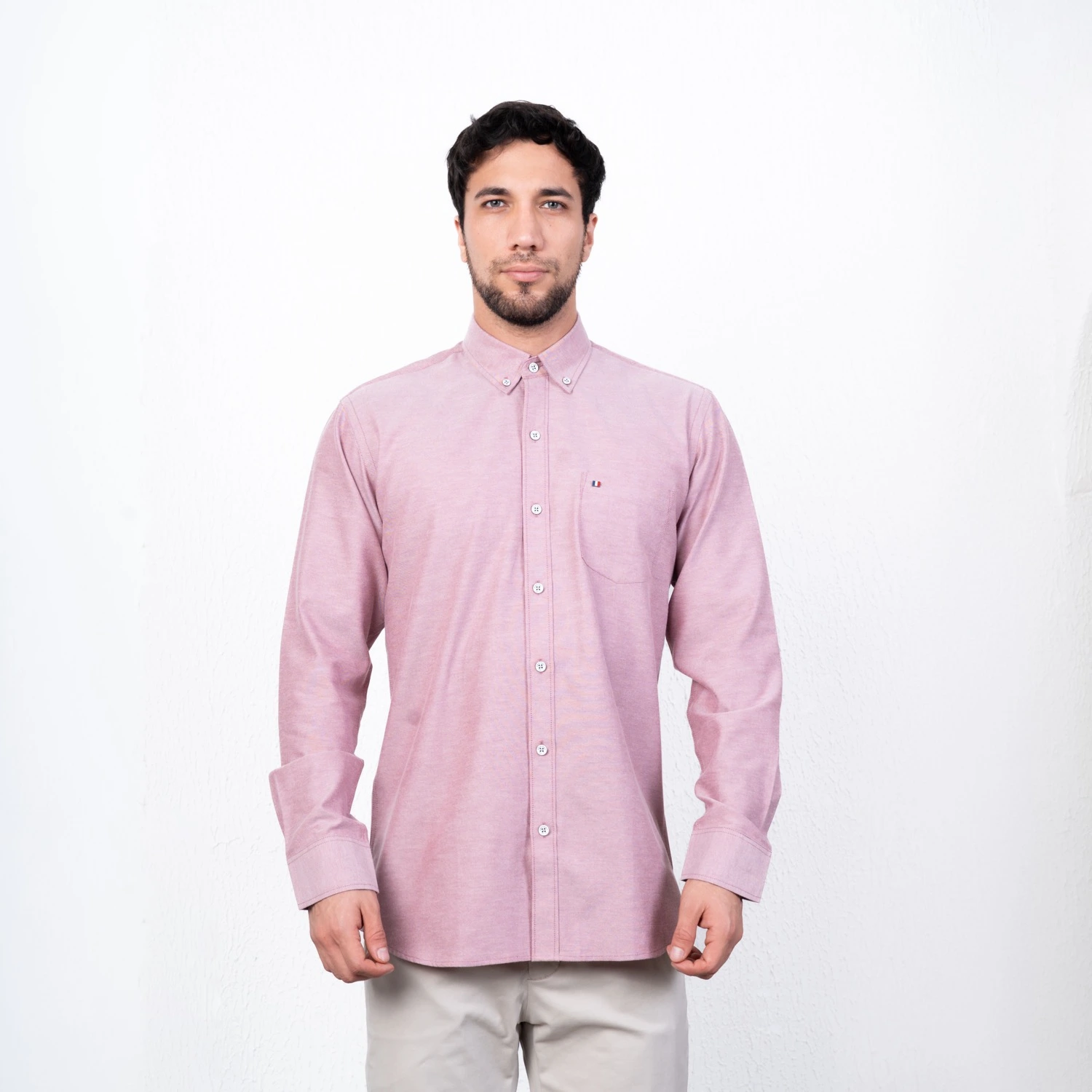 Camisa Oxford ML Color Entero Etiqueta Azul con diseño Francés.| Composición 62% Algodón y 38% Poliester.| Tela con diseño color entero.| Botones personalizados en contraste.| Aplicación de bandera francesa metalica en el bolsillo.| Cuello Buttondown| Aplicación de tela mil rayas en contraste al interior de la media luna y los puños.| Tela Oxord.| Apertura de puños con 2 botones.| Aplicación de cinta Tipping en el cuello en contraste.| Aplicación de hilo en contraste en los botones.